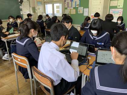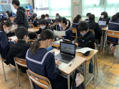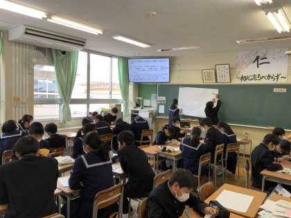 本日4限に、来年度の「14歳の挑戦」に向けて、仕事をするにあたり必要なことは何かを考えました。タブレットパソコンのジャムボートやクラゲチャートを用いて活発に意見を書いたり、話し合ったりしながら考えました。最後には、書記が準備してくれた記述用紙に、仕事に必要な力に加えて、これからの中学校生活をどのように過ごしていきたいかを書きました。書いたことを実行し、必要な力を身に付けていきましょう。
