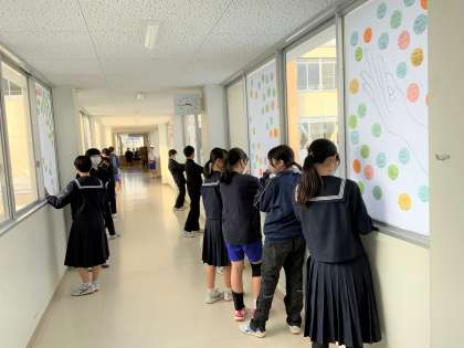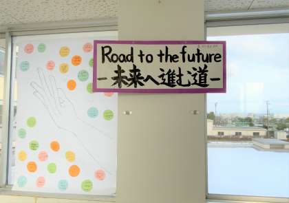 本日、完成した掲示物を2F中央廊下に掲示しました。廊下の名前もRoad to the futureと命名し、11Hの大場さんと12H倉田さんが習字で美しく書いてくれました。華やかに彩られた廊下を通り、来年度への思いを高めていきましょう。