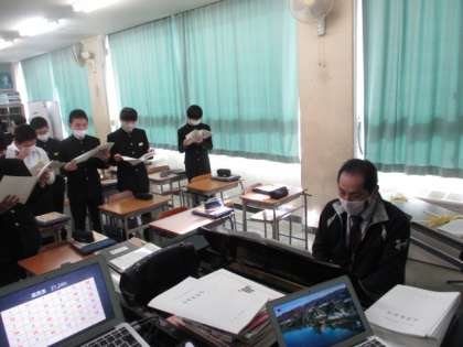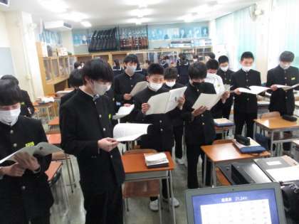 3限、21H音楽の時間の様子です。卒業式の在校生の歌「希望という花を」を練習しています。皆、気持ちを込めて歌っていました。
