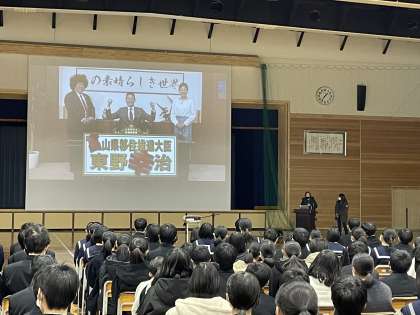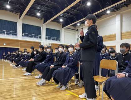 本日5、6限にBBT富山テレビから門嶋様と追谷様をお招きし、「14歳の挑戦」に向けた「13歳の学び」の講演をしていただきました。お二方の実体験をもとに、「様々なことに経験すること」、「諦めず、やり続けること」の重要性について学ぶことができました。講演後の質疑応答では、時間が足りなくなるほどたくさんの生徒が挙手し、質問をする姿が見られました。将来について考えるよい時間となりました。門嶋様、追谷様ご講演いただきありがとうございました。
