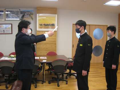 校長室で、春休みに岡山県で行われる第31回ヤングリーグ春季大会に出場する選手の激励会を行いました。