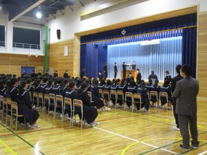 昨日で県立高校の一般入試も終え、3年生は、1限から卒業証書授与式の練習を行いました。式は15日(水)に行われます。