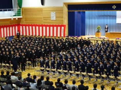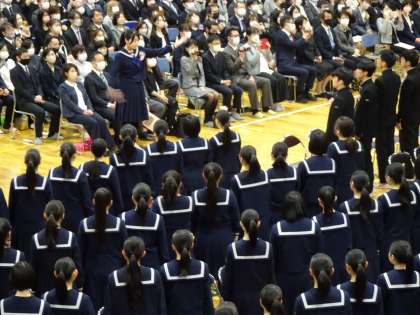 卒業生代表による答辞です。コロナ禍で様々な制約を受けながらも、3年間で多くの思い出を残せた喜びなどを述べました。卒業の歌は保護者に向かって歌いました。