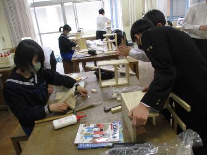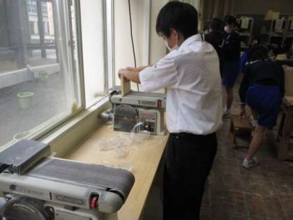 3限、12H技術の授業の様子です。木材加工をしています。完成が近くなっている生徒もいました。