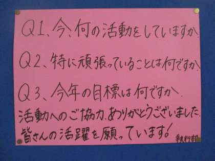 生徒会コーナーには現在、執行部が作成した、それぞれの部の目標などを記した部活動の紹介が掲示されています。