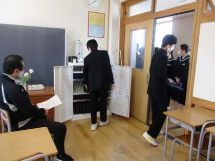 5限、2年生が3年生の教室のタブレットパソコンを1年生の教室に移動する作業を行いました。卒業生が使っていたタブレットパソコンは新入生が使うことになります。