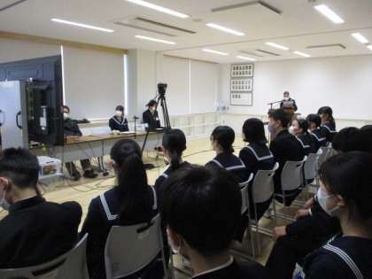 5限、生徒会活動報告会を会議室からのリモート配信で行いました。生徒会執行部、各委員会から後期の活動についての成果や改善点等が報告されました。