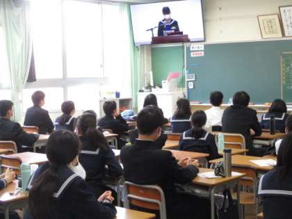 5限、生徒会活動報告会を会議室からのリモート配信で行いました。生徒会執行部、各委員会から後期の活動についての成果や改善点等が報告されました。
