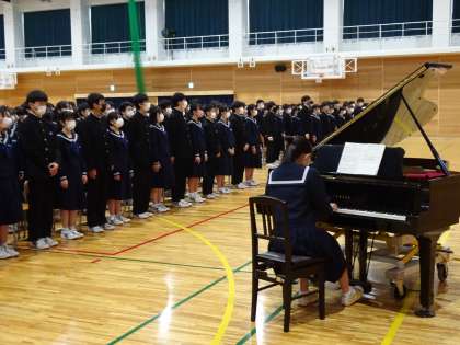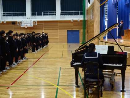 校歌斉唱の様子です。久しぶりに大勢の生徒で歌いました。