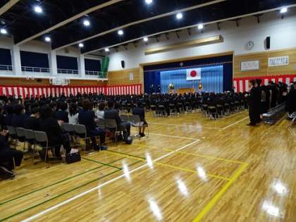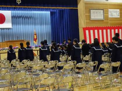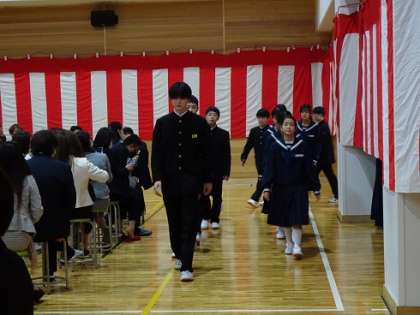 新入生入場です。3年生の誘導で1組から順に入場しました。