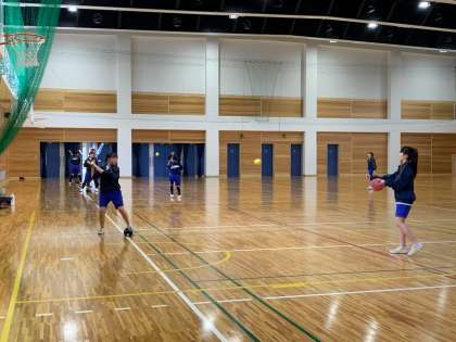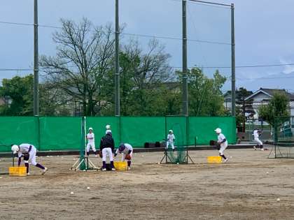 ソフトボール部、野球部は、ロングティーをしてきます。