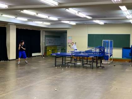 卓球部は、午後からの部活動に備えて自主練習をしています。