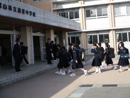 今朝の登校時は晴れになりました。今日と明日、1年生は冨山市学力調査、2,3年生は中教研学力調査を行います。本日の下校完了時間は16:30です。
