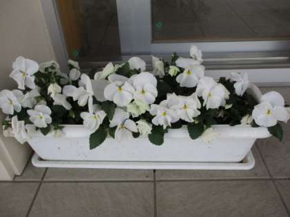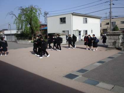 今朝の登校時は晴れになりました。玄関前のプランターの花がきれいに咲いています。本日の下校完了時間は17:30です。