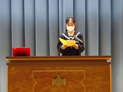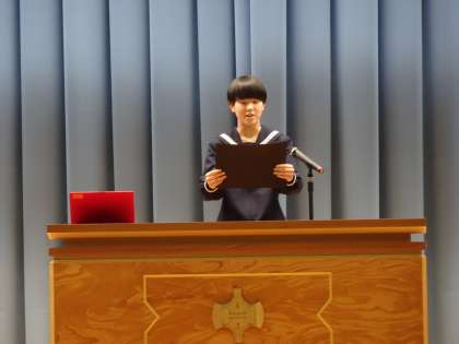 創校記念式に続いて志を高める集会を行いました。「志を育てる教育」は本校の運営方針の一つになっています。夢や目標の実現について生徒代表2名が発表しました。