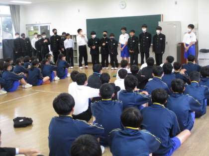 放課後、1年生が正式に入部して部結成が行われました。それぞれ目標をもって取り組みたいですね。写真は上から卓球部、柔道部、ソフトテニス部の様子です。