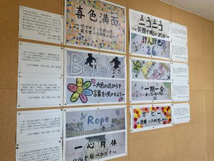廊下には、各クラスの学級目標、学年目標が飾られています。