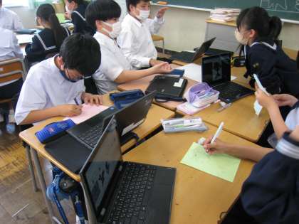 5,6限に、校外学習の事後学習として新聞づくりをしました。各班、手分けして記事を作成します。記事の形や内容を工夫しながらまとめていました。