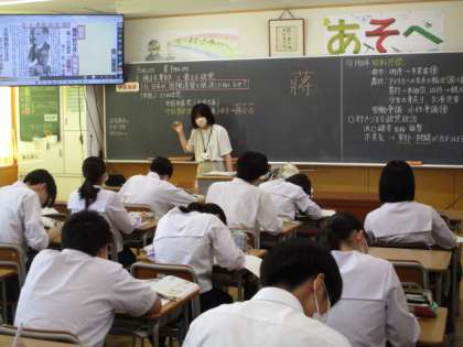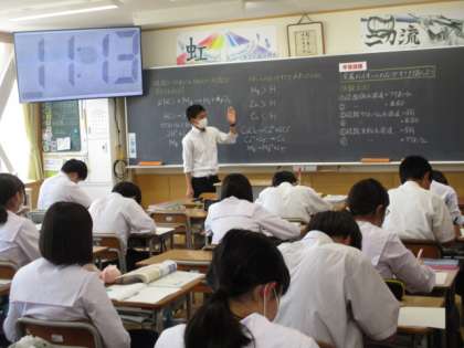 3限、3年生の授業の様子です。写真は上から31H数学、32H社会、33H理科です。