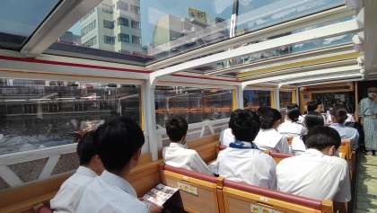 クルーズ、桂きん太郎さんのガイドを楽しんでいます。