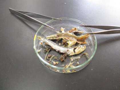 4限、12H理科の様子です。カタクチイワシを分解して体の構造を観察しています。