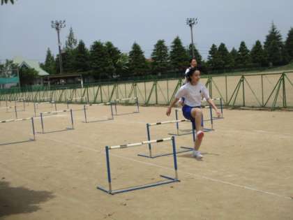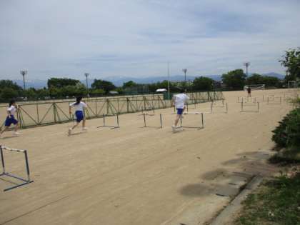 4限、35・36H女子の体育の様子です。ハードル走でタイムを測定しています。