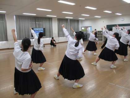 速中応援団が練習を開始しました。朝、A多目的ホールに集合して練習しています。来週行われる市中学校選手権大会の壮行会でその姿が披露されます。