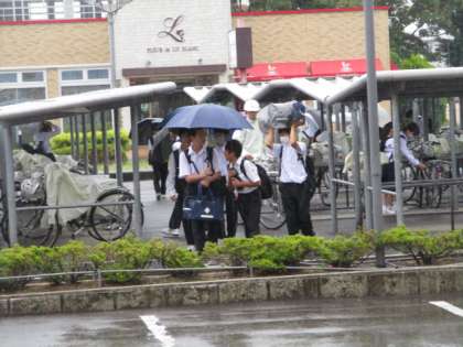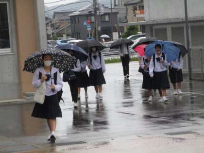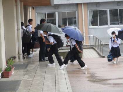 今朝の登校時は雨になりました。本日の下校完了時間は15:55です。