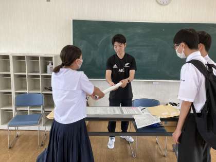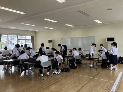 7月3日から始まる、「14歳の挑戦」にむけて、6月21日(水)から事業所へ事前打ち合わせに行っています。自己紹介カードとポスターを先生から受け取り、班長を中心に生徒達のみで出発していきました。打ち合わせを終えた生徒達は、聞いてきたことを報告書に記入し提出しました。いよいよ第一歩を踏み出しました!