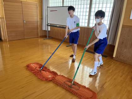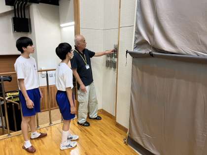 速星公民館では、施設の周囲を掃除したり、ステージの裏側の設備について教えてもらったりしました。午後からは防犯パトロールに参加します。