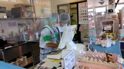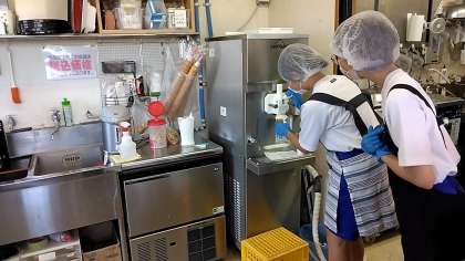 レジ打ちをしたり、ソフトクリームを作ったりしています。