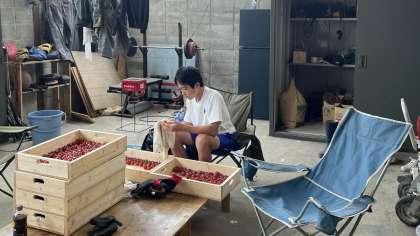 呉羽株式会社では、収穫したおいしいトマトをきれいに拭いています。