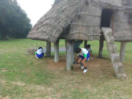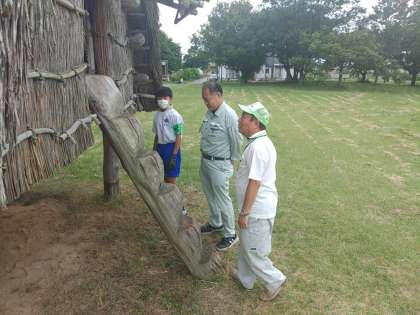 富山市埋蔵文化財センターは北代縄文広場で施設のメンテナンス作業を行いました。高床式倉庫の木材に害虫防除のための灯油を塗布しました。この後、北代縄文通信を作成するそうです。