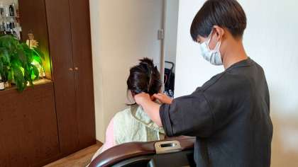 シャンプー準備とシャンプーの実技体験です。