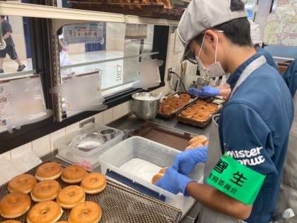 キッチン担当とセールス担当で分かれて、活動していました。キッチン指導の方から「チョコレートを付ける作業がとても上手でした」と、お褒めの言葉をいただきました。