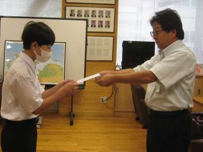 校長室で、岐阜県で行われる第9回全国中学校フェンシング選手権大会に出場する選手の激励会を行いました。