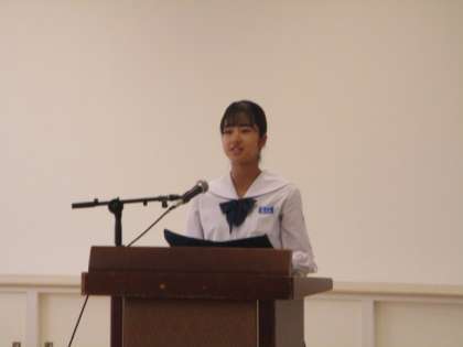 受賞報告会に続いて意見発表会を行いました。各学年の代表者が1学期に体験したことから感じたことや学んだこと、今後に生かしたいことを発表しました。
