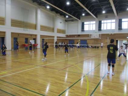 放課後の部活動の様子です。暑い中ですが、熱中症に気を配りながら頑張っています。写真は卓球部男子、バレーボール部です。