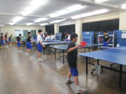 放課後の部活動の様子です。暑い中ですが、熱中症に気を配りながら頑張っています。写真は卓球部男子、バレーボール部です。