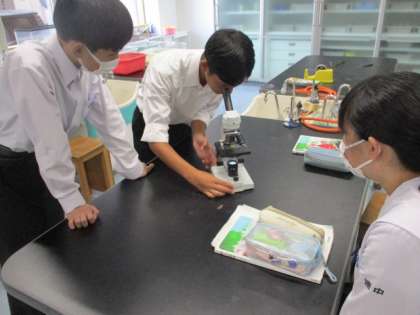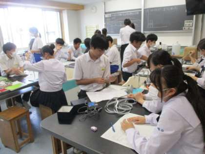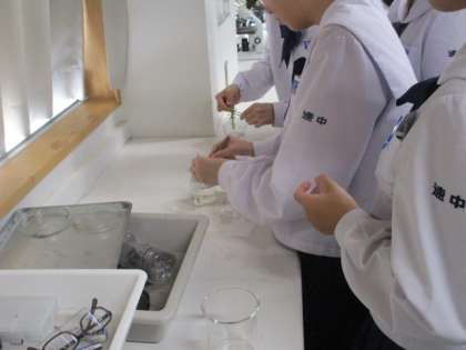 2限、29Hの授業に様子です。水草を用いて光合成のはたらきとは何かについて学習しています。