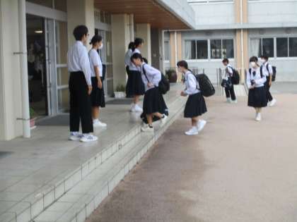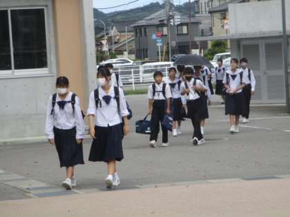 今朝の登校時は晴れになりました。今日は防災の日です。本日の下校完了時間は18:00です。