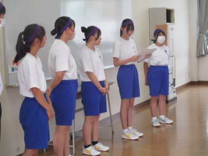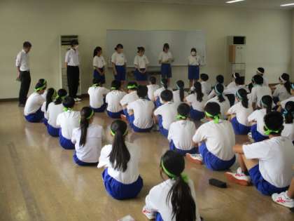 放課後、A多目的ホールに体育大会の団リーダーと実行委員が集まり、これから始まるダンスの練習についての打ち合わせがありました。1、2年生のリーダーを交えた練習は今日からになります。