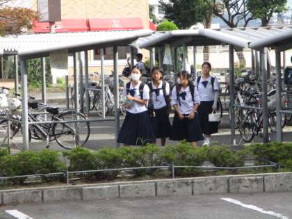 今朝の登校時は晴れになりました。今週もまだ暑さは続きそうです。本日の下校完了時間は16:30です。