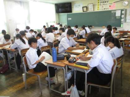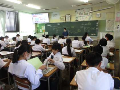 3限、1年生の授業の様子です。写真は上から11H国語、12H体育、13H理科です。