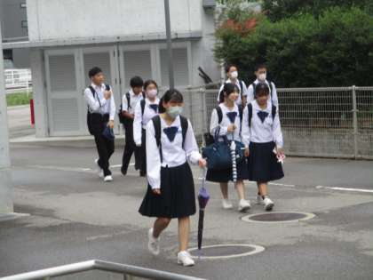 今朝の登校時は曇りになりました。今日は午後から本校にインドネシアから視察研修に来られます。本日の下校完了時間は17:30です。