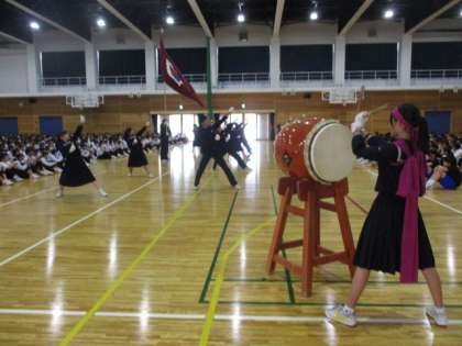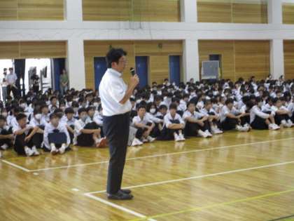 応援団によるエールの後、校長先生から激励の言葉をいただきました。大会は15日(金)から行われます。速中生の活躍を期待します。