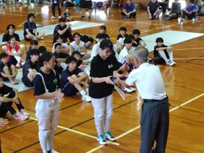 男子団体は惜しくも敗退したのですが、女子団体の部で1年生の友崎選手が入った「速星」チームが優勝しました。