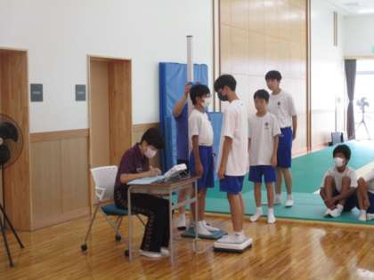 今日は午前中、全学年で発育測定を行いました。4月からどのくらい身長が伸びたでしょう。写真は2年生の様子です。教室では視力測定を行いました。