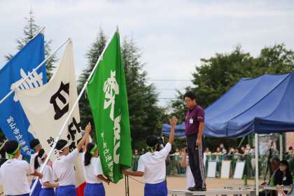 その後選手宣誓、校長先生の激励の言葉、実行委員によるエール交換が行われました。選手宣誓の様子です。