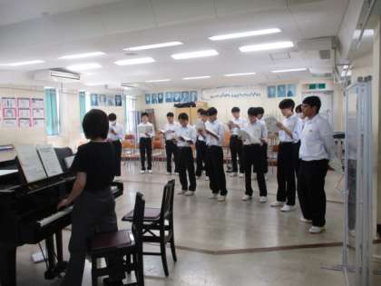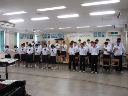体育大会も終わり、今日から通常の授業になりました。3限35Hの様子です。合唱コンクールの曲の練習に真剣に取り組んでいました。
